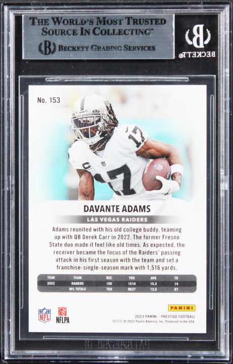 Very low stock (1 unit)$1,799Unit price /Unavailable Raiders Davante Adams Signed 2022 Panini Mosaic Thunder Lane #9 Card BAS Slabbed