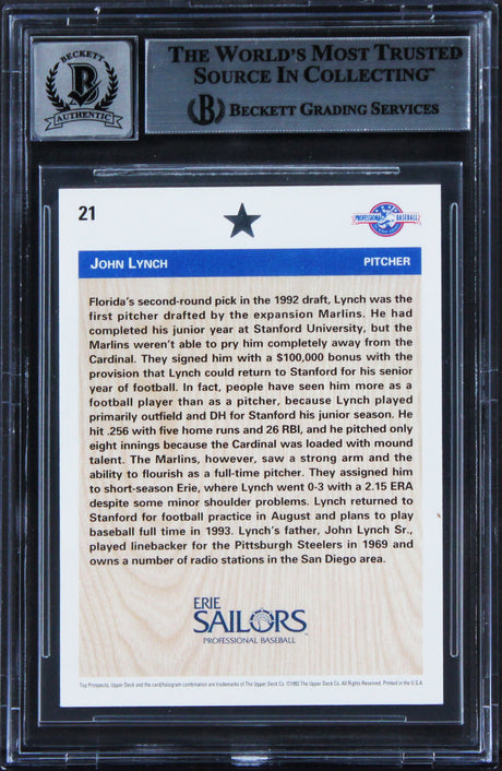 Marlins John Lynch Authentic Signed 1992 Upper Deck Minors #21 Card BAS Slabbed