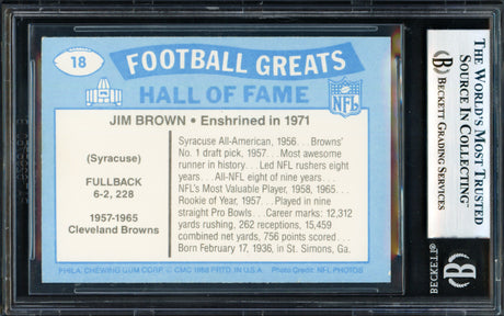 Jim Brown Autographed 1985 Football Immortals Card #18 Cleveland Browns Beckett BAS #18278894