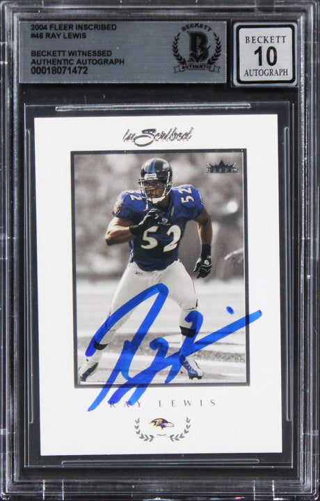 Ravens Ray Lewis Signed 2004 Fleer Inscribed #46 Card Auto Grade 10! BAS Slabbed