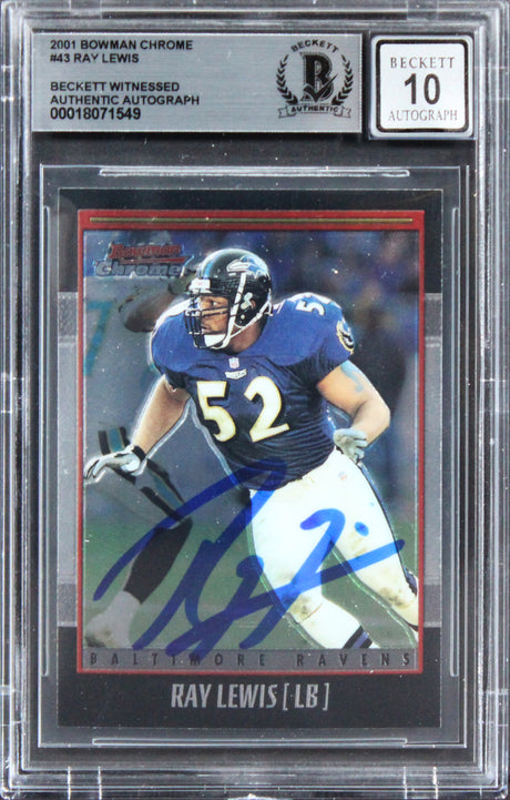 Ravens Ray Lewis Signed 2001 Bowman Chrome #43 Card Auto Graded 10! BAS Slabbed