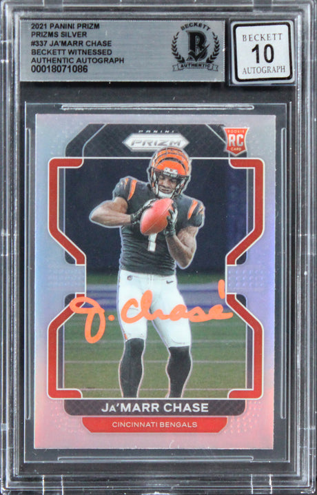 Bengals Ja'Marr Chase Signed 2021 Panini Prizm Silv #337 Card Auto 10! BAS Slab