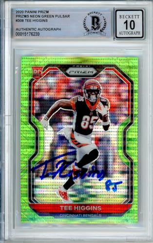 2020 Panini Prizm Neon Green Pulsar #308 Tee Higgins Bengals BGS Autograph 10