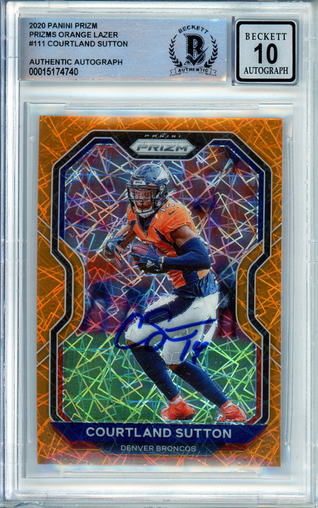 2020 Panini Prizm Orange Lazer #111 Courtland Sutton Broncos BGS Autograph 10