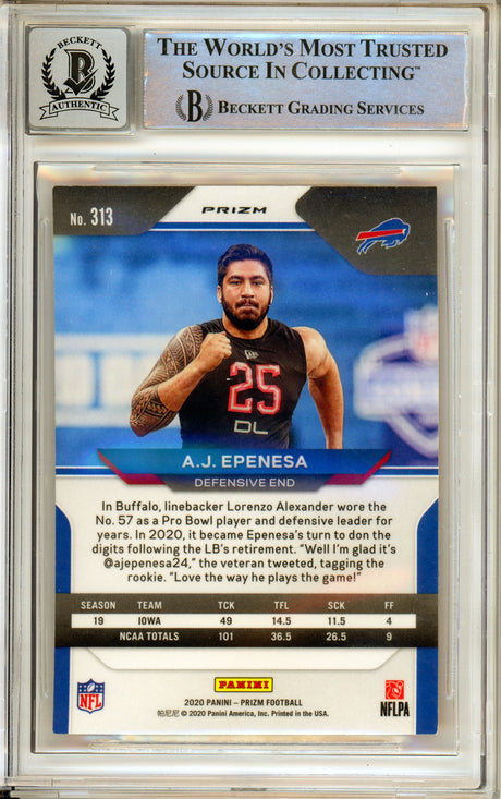 2020 Panini Prizm #313 AJ Epenesa RC Buffalo Bills BGS Autograph 10