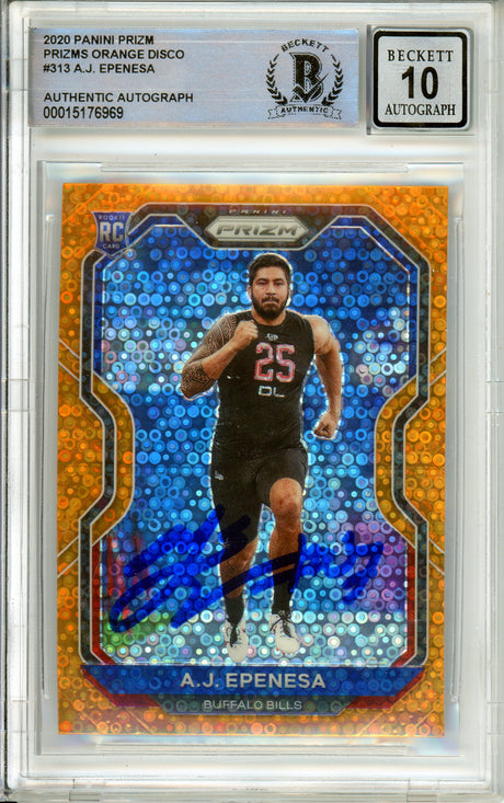 2020 Panini Prizm Orange Disco #313 AJ Epenesa RC Buffalo Bills BGS Autograph 10