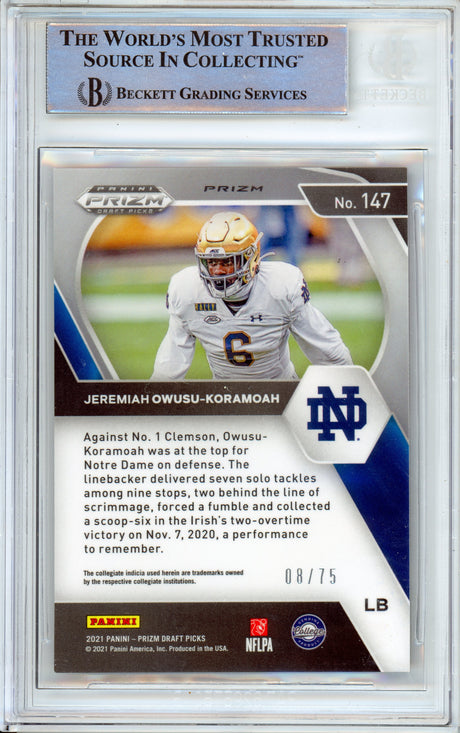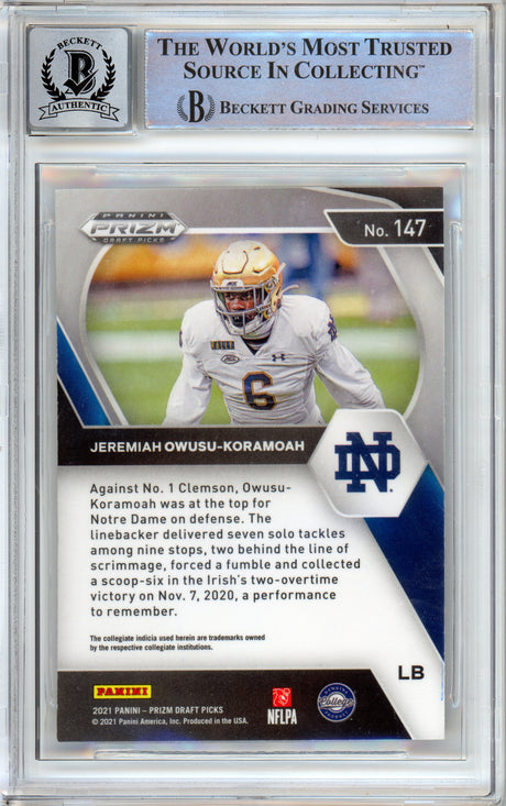 2020 Panini Prizm Draft #147 Jeremiah Owusu-Koramoah RC Notre Dame BGS Auto 10