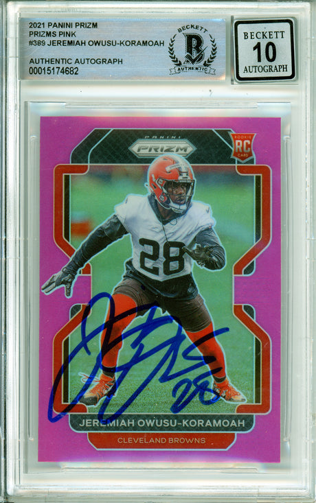 2020 Panini Prizm Pink #389 Jeremiah Owusu-Koramoah RC Cleavland Browns BGS Auto