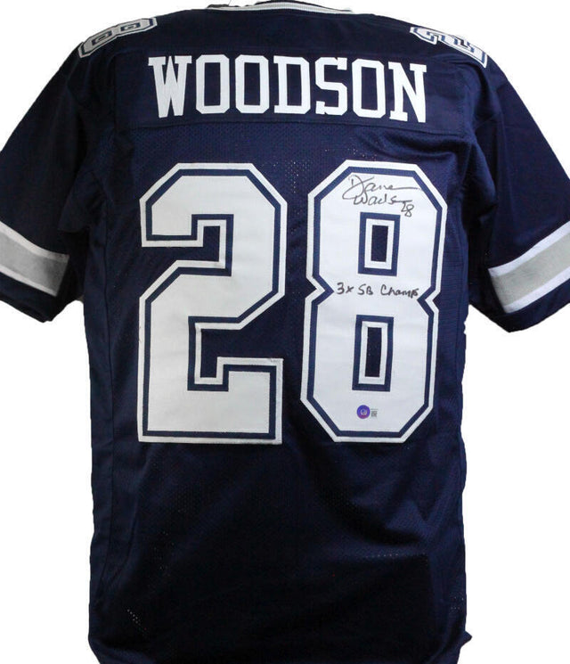 Darren Woodson Autographed Blue w Wte Num Pro Style Jersey Insc- Beckett W *Blk