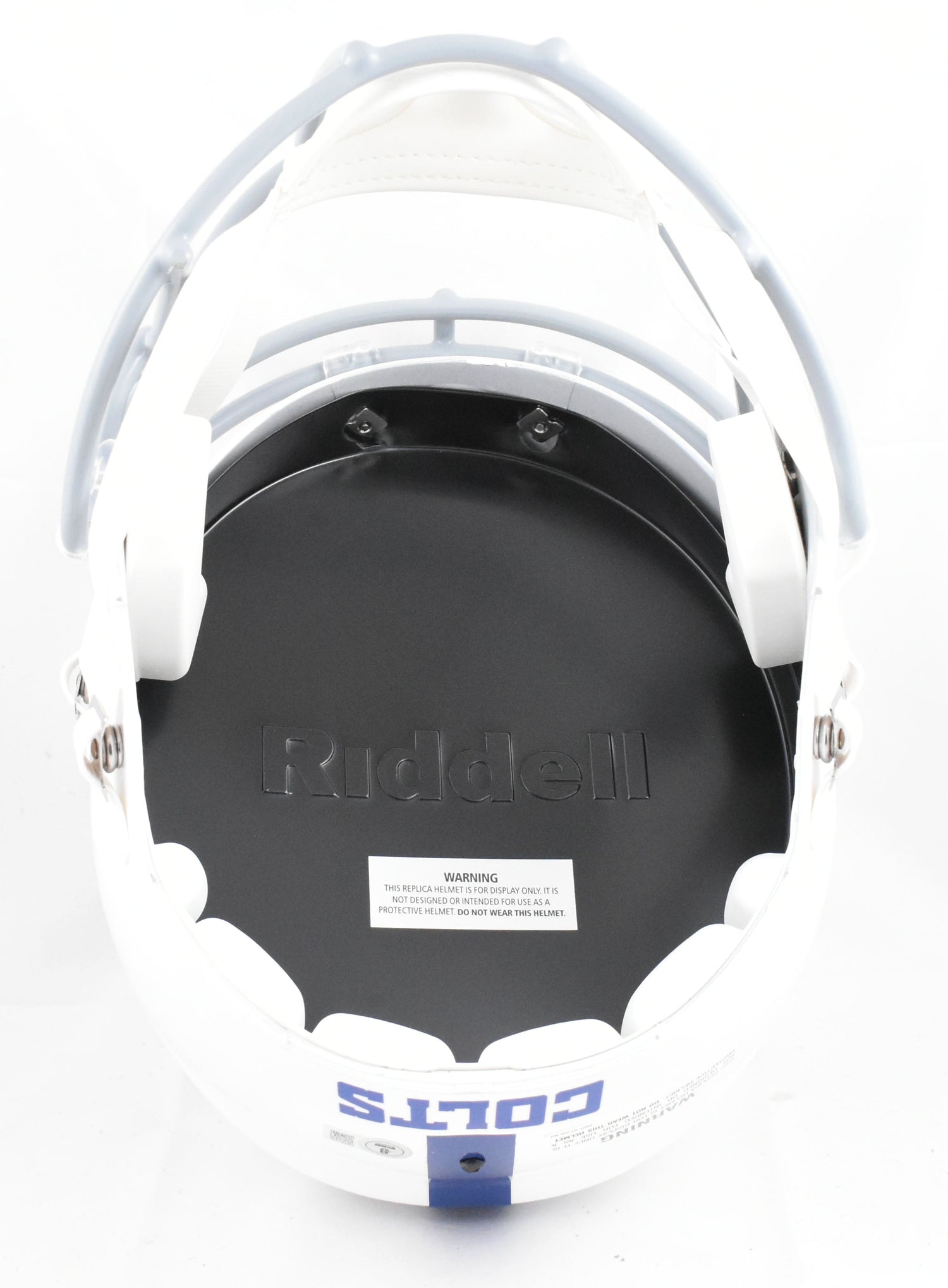Own a piece of football history with this DJ Giddens autographed Indianapolis Colts full-size Riddell Speed Replica helmet. Perfect for any Colts fan or serious memorabilia collector, this signed helmet blends authenticity, collectibility, and fan pride into one incredible display piece. DJ Giddens, the dynamic running back for the Indianapolis Colts, added his signature to this replica helmet during a verified signing event, making it a valuable addition to any NFL memorabilia collection.