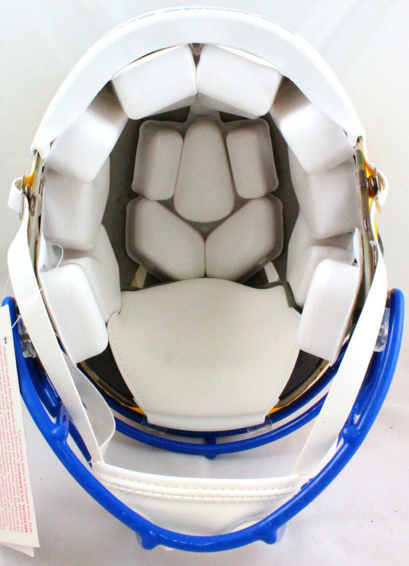 Own a piece of football history with this Kurt Warner signed St. Louis Rams Riddell Camo Full-Size Speed Authentic Helmet, personally autographed and inscribed with "SB MVP, HOF." Warner, a Hall of Famer and Super Bowl legend, cemented his legacy by leading the Rams to victory in Super Bowl XXXIV, earning the Super Bowl MVP title. This helmet is a must-have for Rams fans and serious memorabilia collectors.