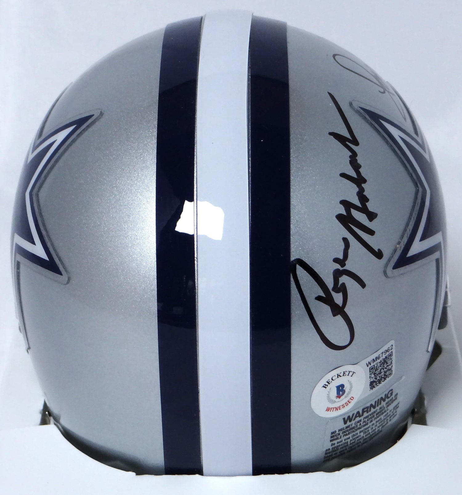 - Dual-signed by Roger Staubach and Tony Dorsett – Two Dallas Cowboys icons immortalized on a single mini helmet.