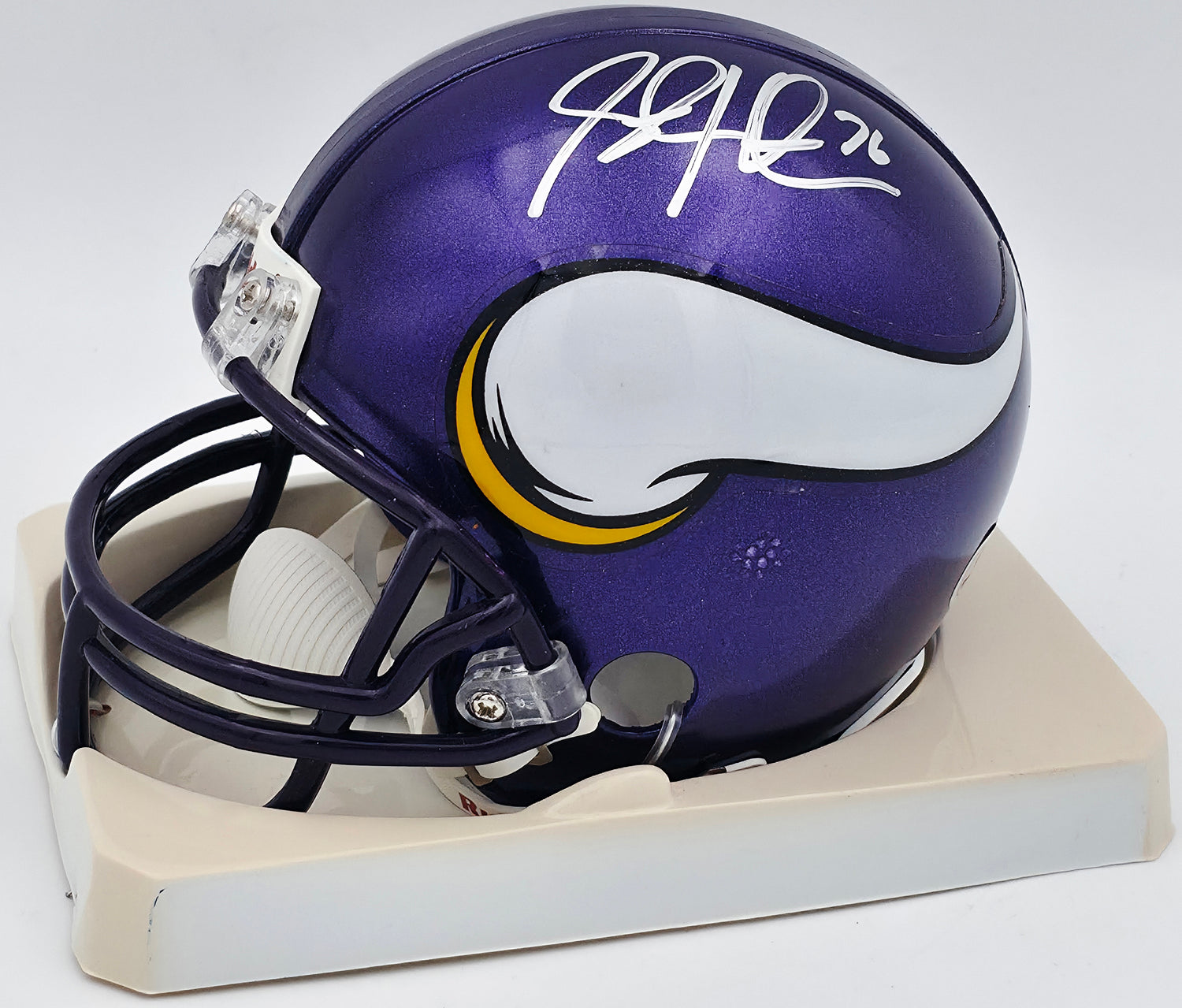 Own a piece of Minnesota Vikings history with this officially licensed Minnesota Vikings Purple Mini Helmet hand signed by NFL legend Steve Hutchinson. A dominant force on the offensive line, Hutchinson was a key part of the Vikings' formidable offense during his tenure and was inducted into the Pro Football Hall of Fame in 2020 — making this autographed collectible a must-have for serious fans and memorabilia collectors alike.