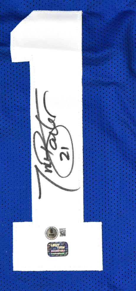 Tiki Barber Autographed Blue Pro Style Jersey - Beckett W Hologram *Black
