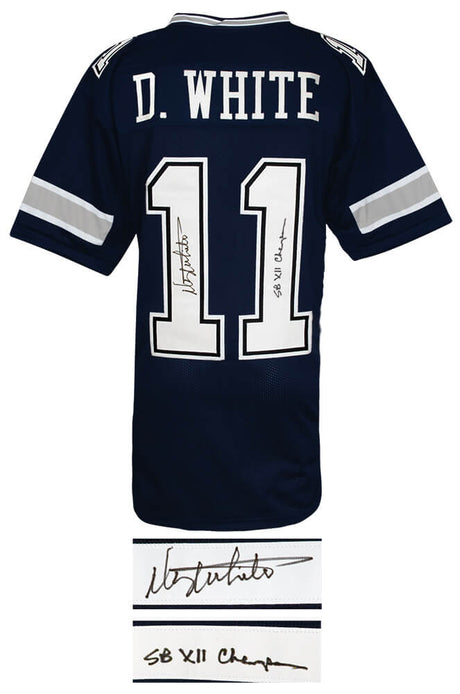 Danny White Signed Navy Custom Football Jersey w/SB XII Champs
