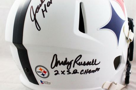 Ham Lambert Russell Autographed Steelers 63-76 F/S Helmet w/ HOF- JSA W *G