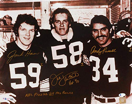 Ham Lambert Russell Steelers Signed 16x20 B&W Photo w/ Pro Bowls- Beckett W Auth
