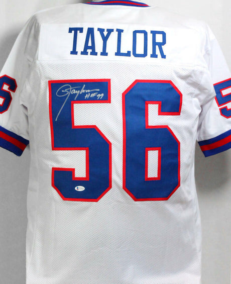 Lawrence Taylor Autographed White Pro Style Jersey w/HOF- Beckett W *Silver *6