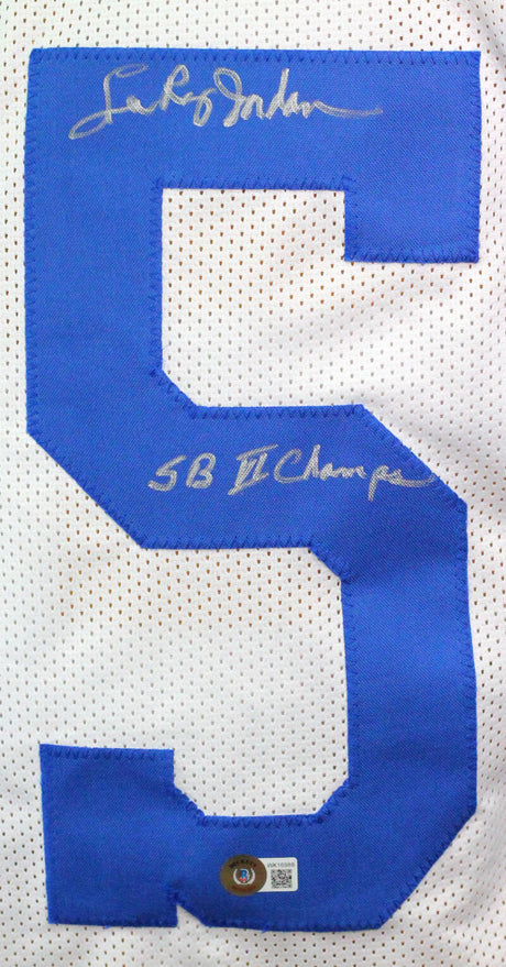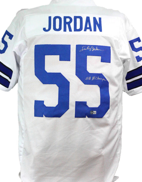 Lee Roy Jordan Autographed White Pro Style Jersey W/ SB VI Champs- Beckett W*Sil