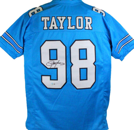 Lawrence Taylor Autographed Light Blue College Style Jersey- Beckett W *Black