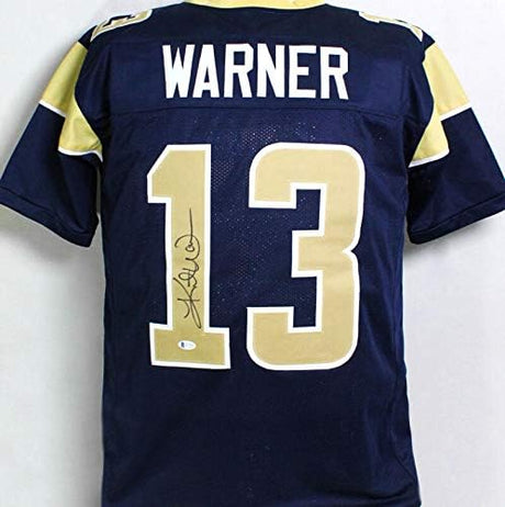 Kurt Warner Autographed Blue/Gold Pro Style Jersey - Beckett W *Black *1