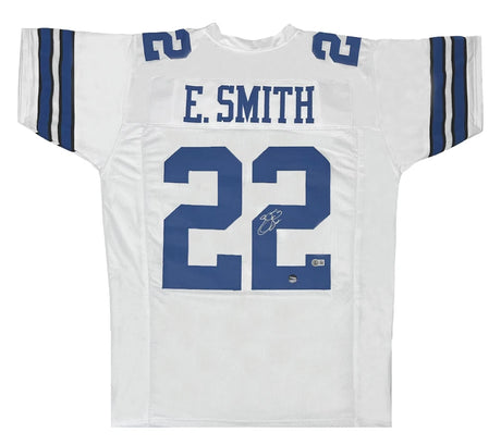 Emmitt Smith Autographed White #22 Custom Jersey Beckett Witnessed