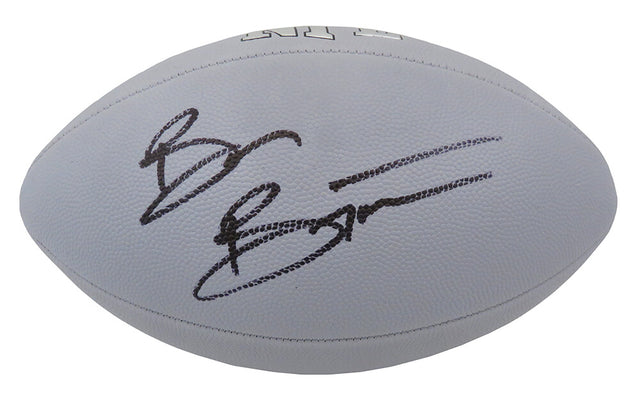 This officially licensed Brian Bosworth signed Wilson MVP silver full size NFL football is a must-have collectible for fans of 1980s football and Oklahoma Sooners history. Known as "The Boz," Brian Bosworth made waves in college football and the NFL with his larger-than-life personality and aggressive playing style. This striking silver NFL football bears his authentic signature, making it a standout piece for any dedicated sports memorabilia collection.