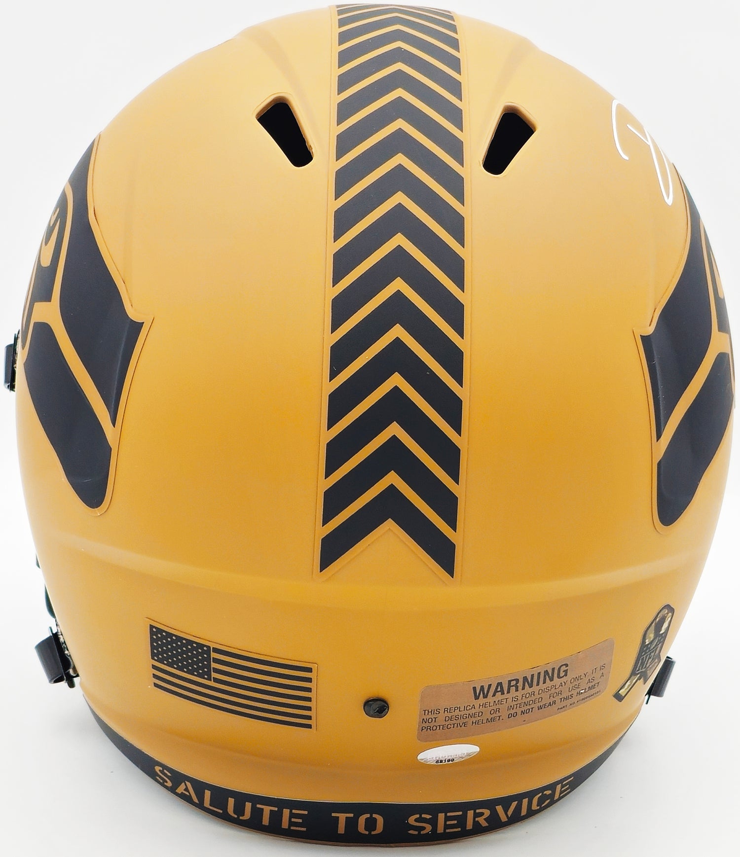 Own a piece of Seattle Seahawks history with this Camo Brown 2023 Salute to Service Full-Size Speed Replica Helmet, hand-signed by Devon Witherspoon. Designed to honor the brave men and women of the U.S. military, this unique Salute to Service edition helmet stands out with its distinctive camo pattern, created using water-transfer technology—ensuring that each piece is one-of-a-kind.
