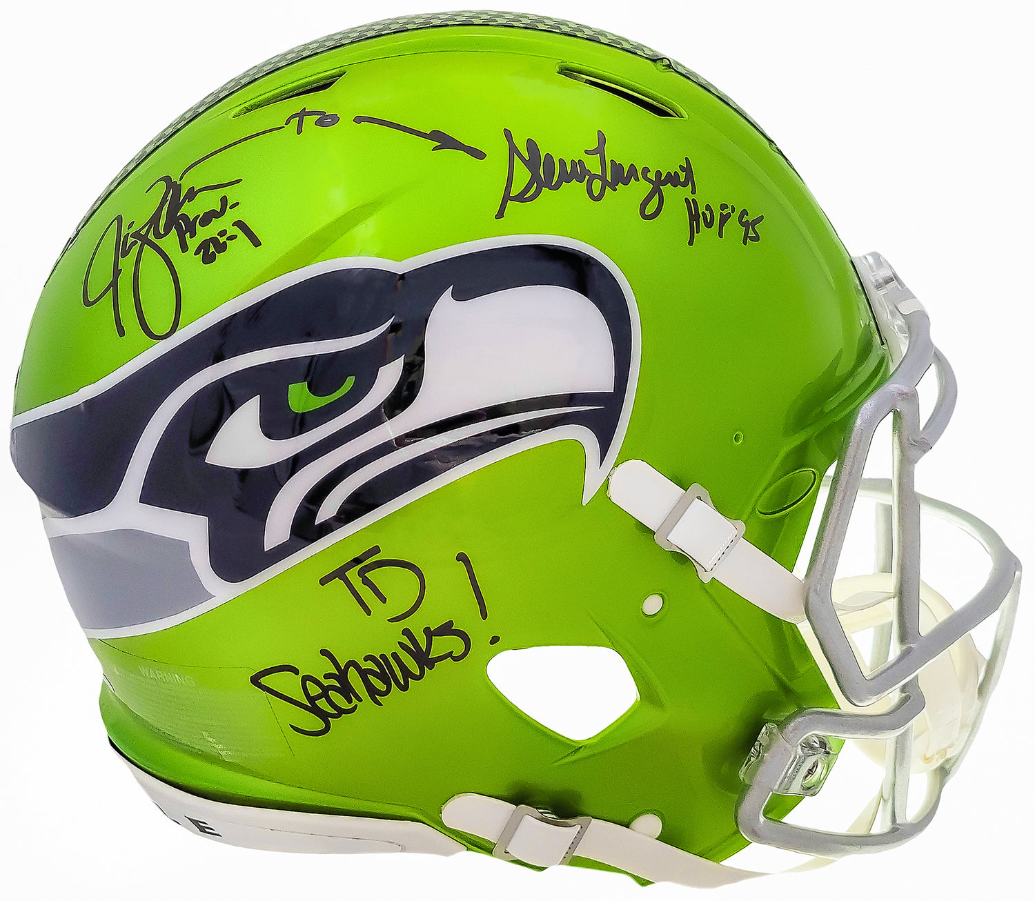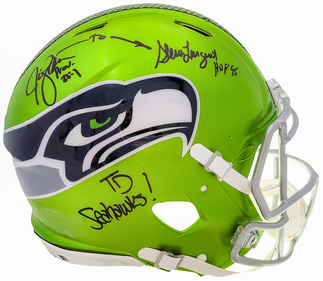 Steve Largent & Jim Zorn Autographed Seattle Seahawks Flash Green Full Size Authentic Speed Helmet "TD Seahawks!" MCS Holo Stock #210448