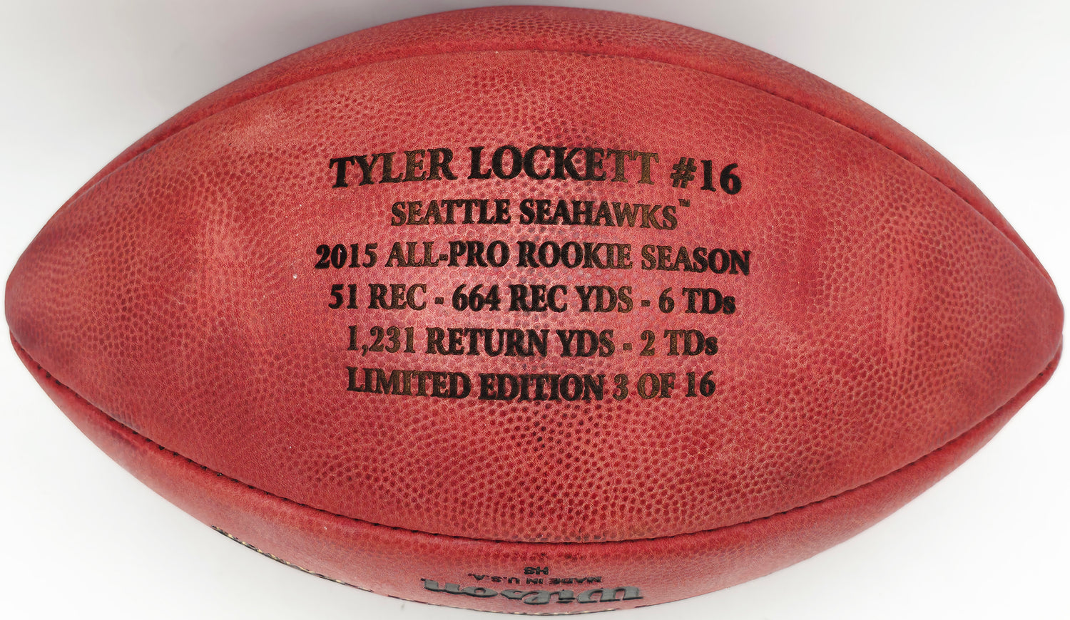 - Official NFL Leather Stats Football featuring hand-signed autograph from Tyler Lockett