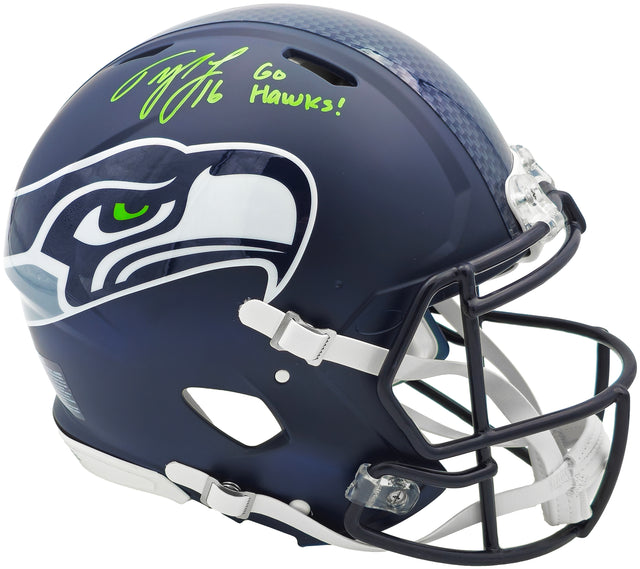 Tyler Lockett Autographed Seattle Seahawks Blue Full Size Speed Authentic Helmet "Go Hawks" MCS Holo Stock #236375
