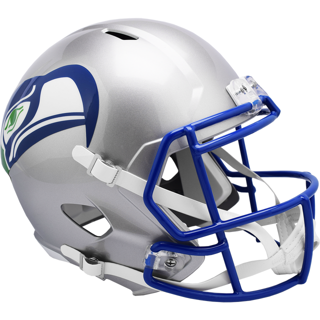 - Official full-size Speed Replica Helmet, designed in the Seattle Seahawks’ 1983-01 throwback silver style
