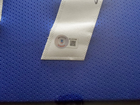 Seattle Seahawks Shaun Alexander Autographed Framed Blue Jersey Beckett BAS Stock #200433
