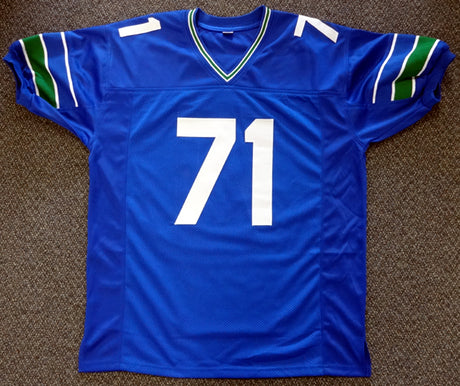 Seattle Seahawks Walter Jones Autographed Blue Jersey "HOF '14" MCS Holo Stock #72404