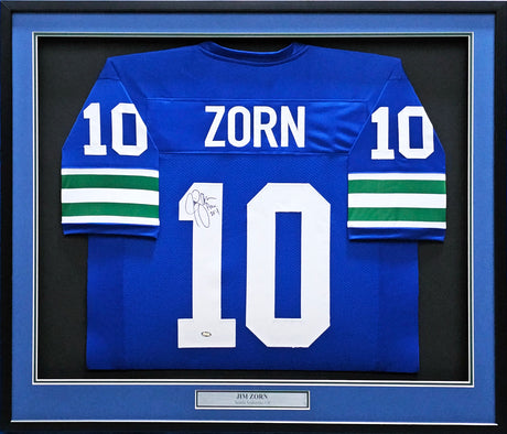 Seattle Seahawks Jim Zorn Autographed Framed Blue Jersey MCS Holo Stock #214097