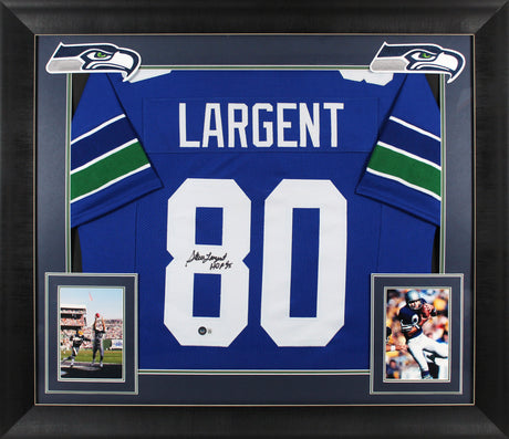 Seattle Seahawks Steve Largent Autographed Framed Blue Jersey "HOF 95" MCS Holo Stock #218636