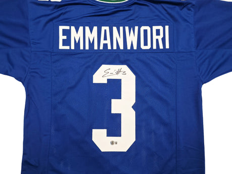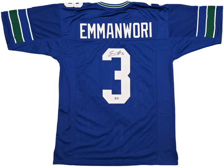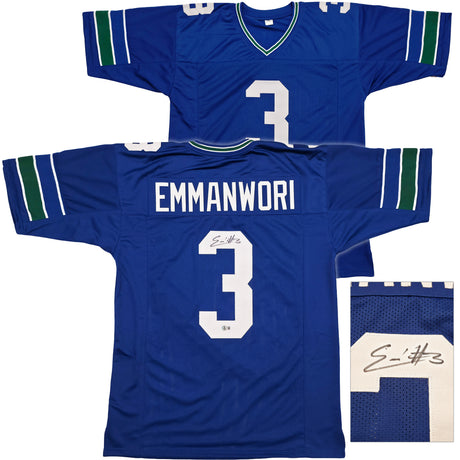 Seattle Seahawks Nick Emmanwori Autographed Throwback Blue Jersey Beckett BAS Witness Stock #256038