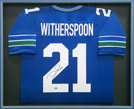 Seattle Seahawks Devon Witherspoon Autographed Framed Blue Throwback Jersey MCS Holo Stock #256419