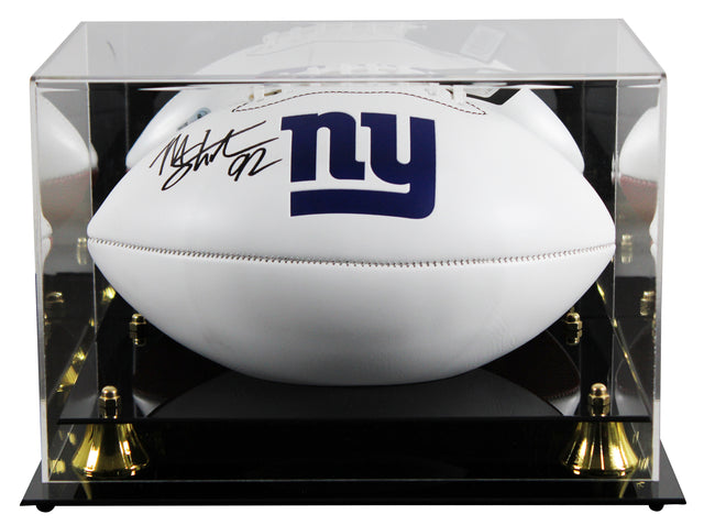 Own a piece of New York Giants history with this Autographed Franklin White Panel Logo Football with UV Mirrored Back Acrylic Display Case, personally signed by Michael Strahan—NFL Hall of Famer and Super Bowl XLII champion. A cornerstone of the legendary Giants defense, Strahan is celebrated for his iconic career, including setting the single-season sack record. This signed football is an ideal centerpiece for any Giants enthusiast or collector of sports greatness.