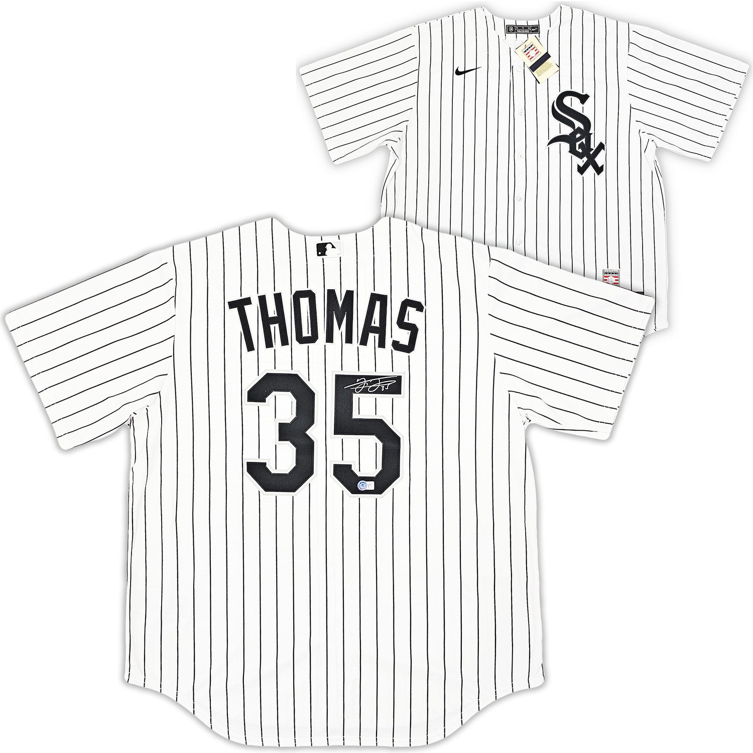 Own a piece of baseball history with this White Pinstripes Nike Chicago White Sox Jersey, hand-signed by Hall of Famer Frank Thomas. A must-have for collectors and fans, this jersey is a tribute to one of the greatest sluggers in White Sox history.