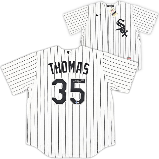 Chicago White Sox Frank Thomas Autographed White Pinstripes Nike Jersey Size XL Beckett BAS Witness Stock #215871