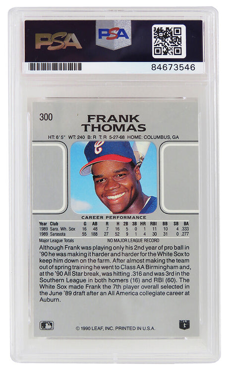 Frank Thomas Signed White Sox 1990 Leaf Rookie Baseball Card #300 (PSA Encapsulated - Auto Grade 10)