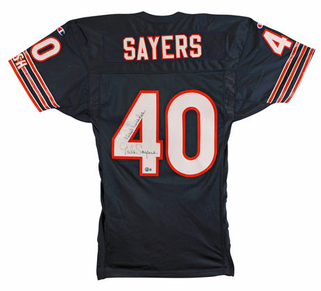 Bears Gale Sayers "Best Wishes" Signed Navy Blue Champion Jersey BAS #BV01101