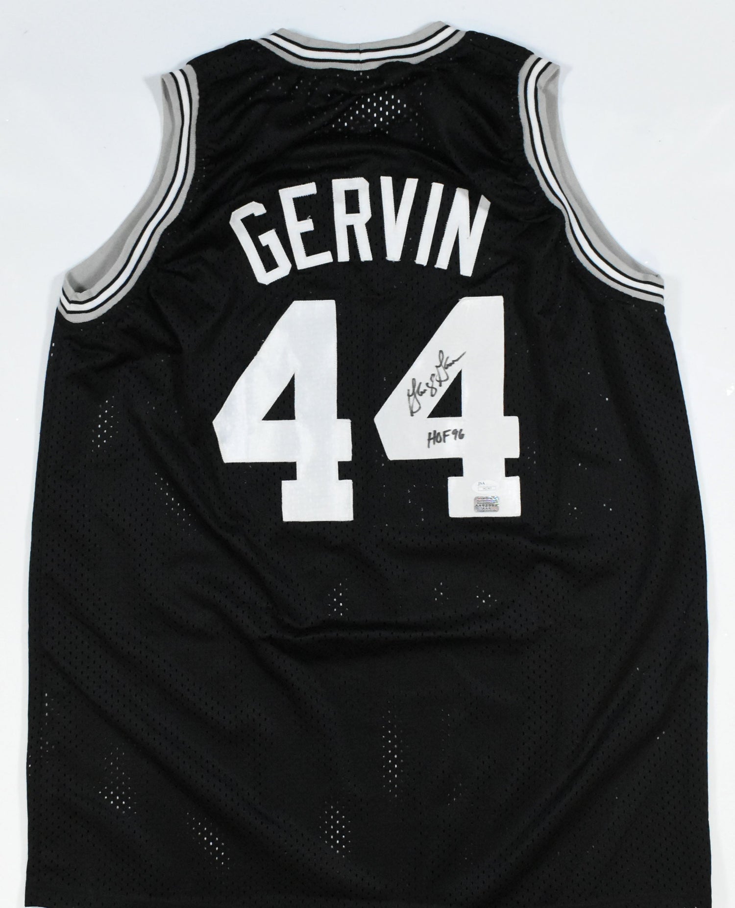This is not an official NBA jersey. It is a custom-made, non-name-brand jersey created in authentic style with professionally stitched letters and numbers—perfect for autograph displays. Each jersey is hand-signed by Gervin and comes with James Spence Authentication (JSA) for verified authenticity.