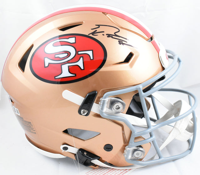 Own a piece of NFL history with this George Kittle Autographed Riddell Speed Flex Authentic Helmet, a must-have collectible for any San Francisco 49ers fan. This full-size, game-accurate helmet is signed by the star tight end and verified by Beckett Witnessed Authentication, ensuring authenticity and long-term value.