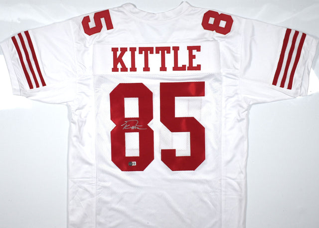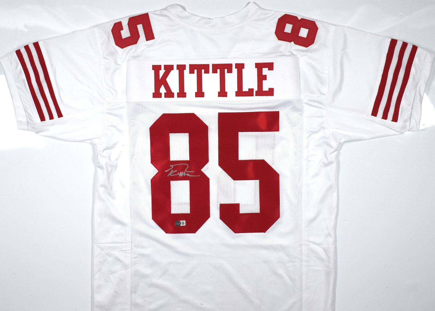 This authentic-style jersey features stitched letters and numbers and has been personally autographed by star tight end George Kittle. While this is not an official NFL jersey and contains no tags, logos, or emblems, it offers the perfect display piece for any die-hard fan.