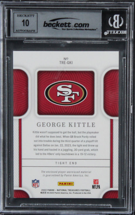 49ers George Kittle Signed 2022 Natl Treasures TT #43 2/25 Card Auto 10 BAS Slab