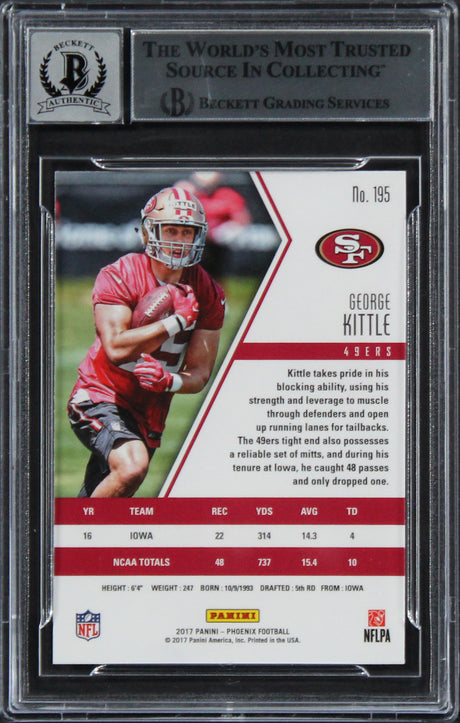 George Kittle Signed 2017 Panini Phoenix Purple #195 RC Card Auto 10 BAS Slab 2
