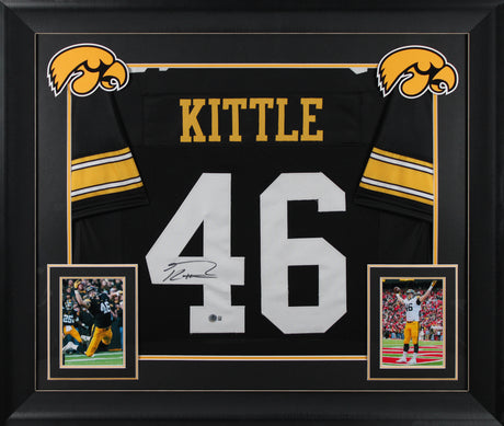 Iowa George Kittle Authentic Signed Black Pro Style Framed Jersey BAS Witnessed