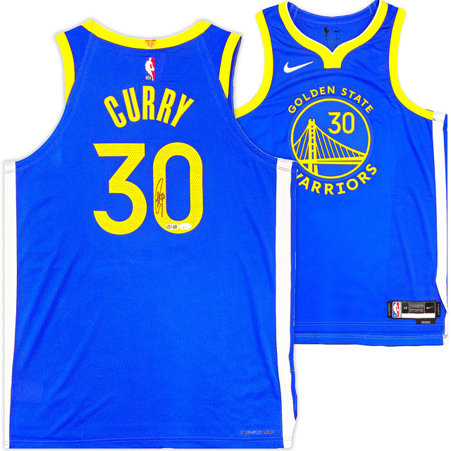 Golden State Warriors Stephen Curry Autographed Blue Nike Authentic Icon Edition Jersey Size 48 JSA Stock #235686